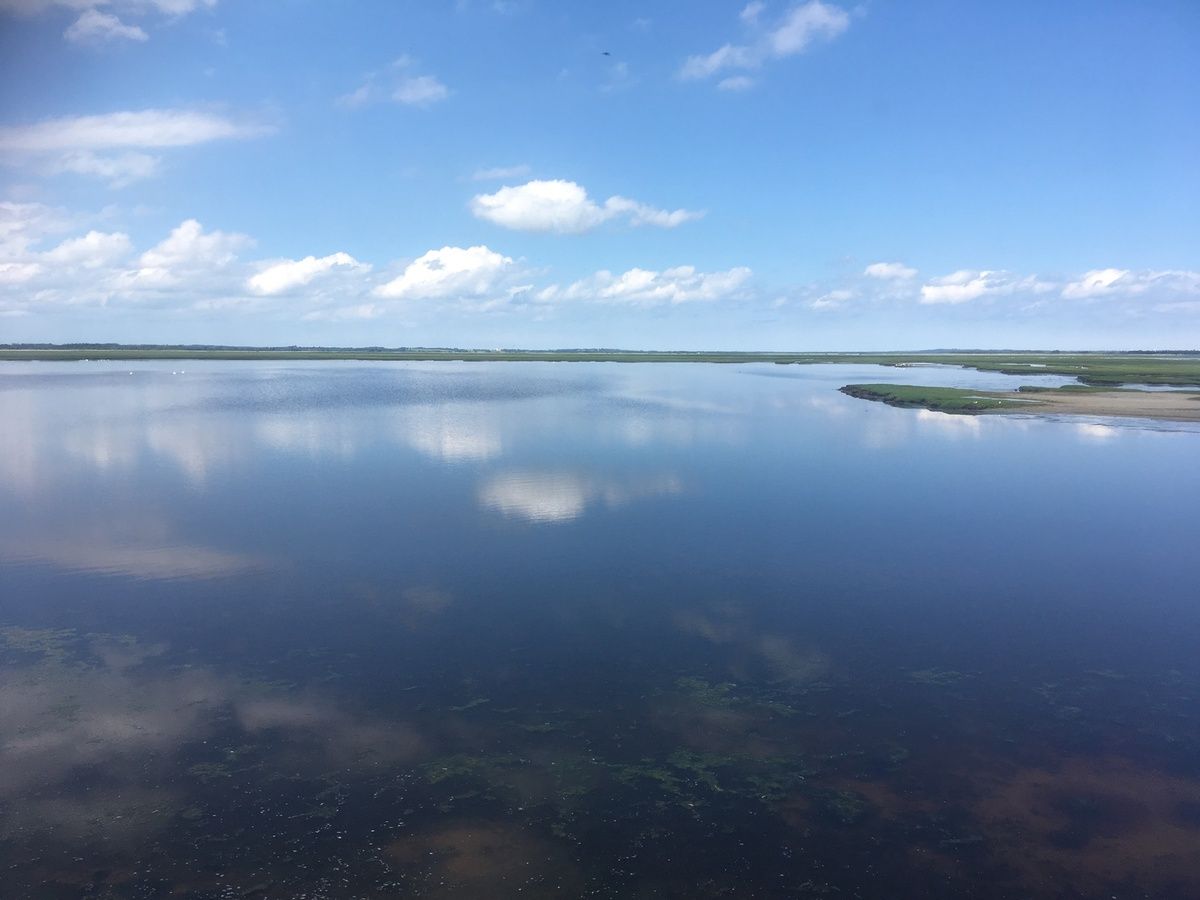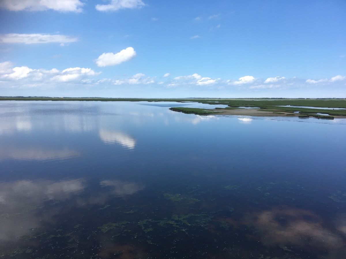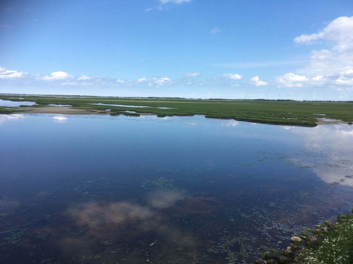 Une des 2 petites maisons était un observatoire pour observer les oiseaux et le paysage était splendide avec les nuages se reflétant dans les marais. 😊