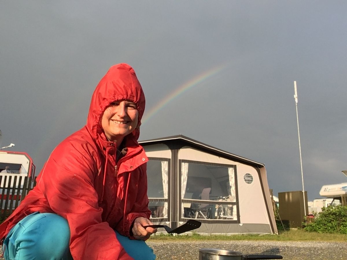 Cela dit, la pluie n’a pas que des inconvénients car ce soir elle nous a donné un magnifique arc-en-ciel 😄